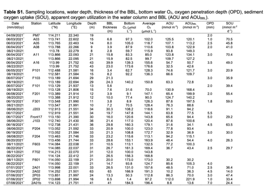 數(shù)據(jù)分析:結(jié)合水柱分層(N2值,圖1c)和BBL厚度,分析SOU與缺氧的關(guān)系(圖3)。