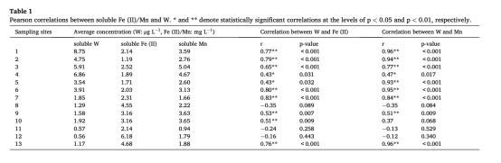 溶解態(tài)W、Fe(II)、Mn(圖3、圖6):