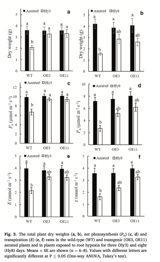 生長與氣體交換(圖3):表明氧氣供應的改善對整體植物生理功能的保護作用。