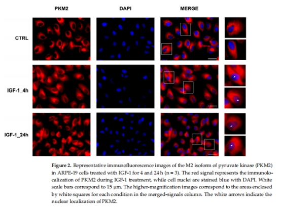 A[IGF-1處理ARPE-19細(xì)胞] --> B[檢測PKM2表達(dá)/二聚化/核定位]