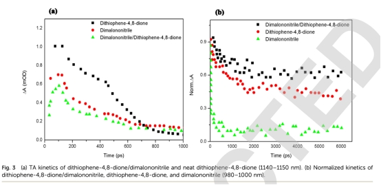 光學(xué)吸收特性: 測量了二噻吩-4,8-二酮和二丙二腈的吸收系數(shù)(圖1)。意義:確定材料的光捕獲能力,為選擇激發(fā)波長和理解光生電荷產(chǎn)生提供基礎(chǔ)。