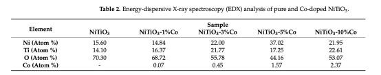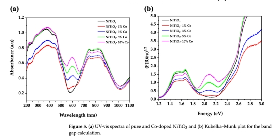 鈷摻雜通過(guò)Co2?取代Ni2?位點(diǎn)擴(kuò)大NiTiO3晶格,降低帶隙(≤5% Co),增強(qiáng)紫外光吸收。
