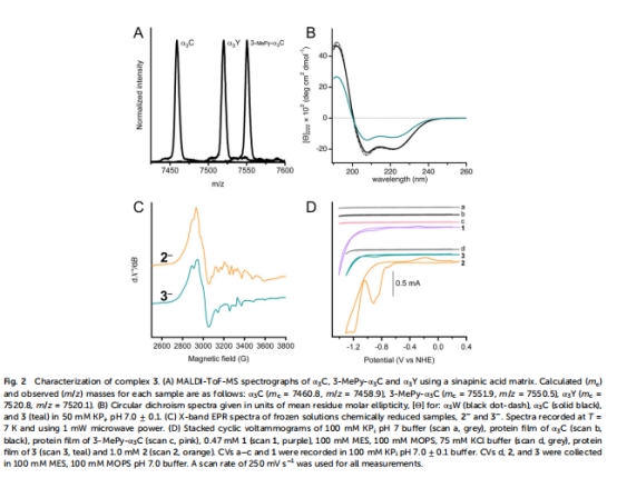 驗(yàn)證鈷肟結(jié)合(質(zhì)譜、UV-Vis)、蛋白折疊(圓二色譜)、鈷價(jià)態(tài)(EPR)及電化學(xué)行為(循環(huán)伏安)。