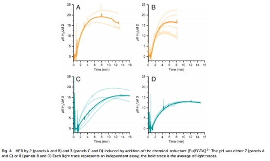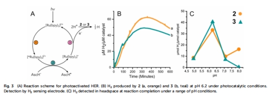 在電化學(xué)、光化學(xué)([Ru(bpy)?]2?/抗壞血酸體系)和化學(xué)還原([Eu(EGTA)]2?)條件下量化產(chǎn)氫性能。