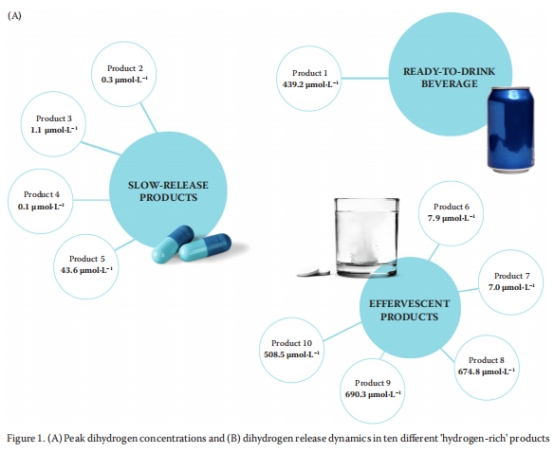 摘要指出:研究通過高靈敏度電化學(xué)方法評(píng)估了10種市售“富氫”補(bǔ)充劑的分子氫(H?)濃度與釋放動(dòng)力學(xué)。結(jié)果顯示,僅30%的產(chǎn)品達(dá)到宣稱的“生物有效濃度”(>500 μmol·L?1),不同產(chǎn)品單次劑量釋放的H?量差異高達(dá)7000倍,存在嚴(yán)重的標(biāo)簽誤導(dǎo)問題。