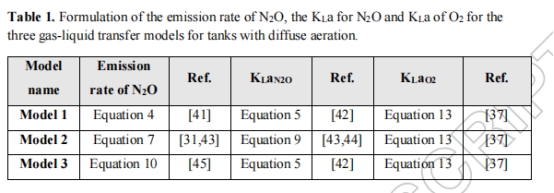 論文針對污水處理廠(WRRFs)中擴散曝氣系統(tǒng)的N?O排放模型展開研究,批判性評估了三種傳質方程(薄膜理論、精細氣泡模型、壓力依賴模型)的預測差異。研究表明: