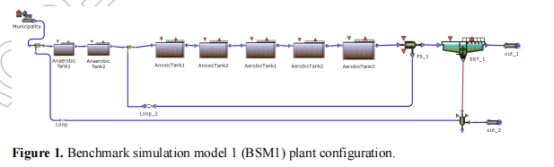 使用BSM1基準模型(圖1,表2),調整DO(0–5 g/m3)、池深(1–10 m)、α因子(0.4–1.2)、β因子(0.8–1)、氮負荷(20–120 mg-N/L)。