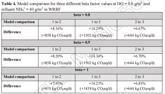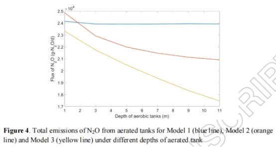 模型選擇顯著影響排放預測:在溶解氧(DO)為0.6 g/m3時,模型間差異達10-16%;池深增加時差異擴大至14-26%。