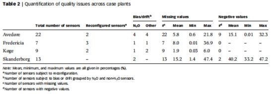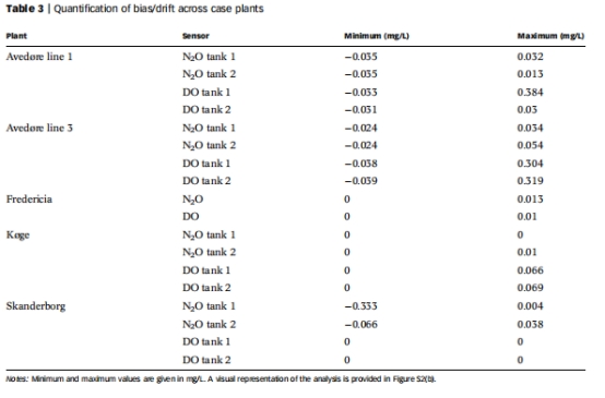 負值/漂移 22%變量存在負值;15/18個DO/N?O傳感器存在漂移(表2, 表3) 傳感器校準不足(如Skanderborg廠N?O漂移達-0.333 mg/L),影響長期監(jiān)測準確性。