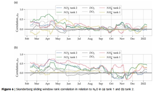 Avedore(Biodenitro工藝):N?O與相鄰池NH?相關性較高(圖7);