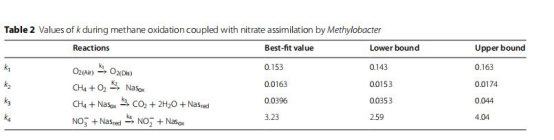 動力學建模:構建包含4步反應的模型(O?溶解→CH?氧化→Nas還原→NO??還原),擬合速率常數(表2)。
