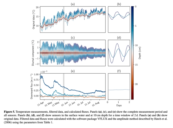 自制光纖氧傳感器可精準定位氧化-缺氧界面(圖4a),溫度數據成功反演垂向潛流交換通量(圖5)。