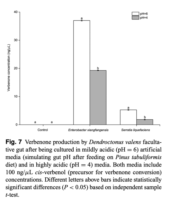 Effects of simulated gut pH environment on bacterial composition and pheromone production of Dendroctonus valens