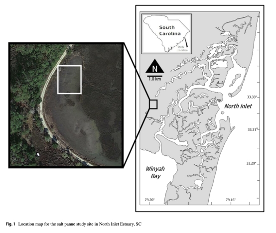 本研究首次量化了美國南卡羅來納州北灣河口(North Inlet Estuary)鹽沼洼地(supratidal salt panne)中底棲微藻(BMA)的生物量、群落組成、凈初級生產(chǎn)力(NPP)及招潮蟹(Leptuca pugilator)的攝食影響。關鍵發(fā)現(xiàn)包括: