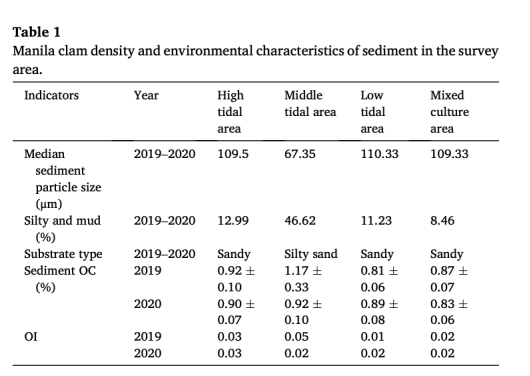 密度效應:高養(yǎng)殖密度(中潮區(qū))加劇有機污染,促進低氧/H?S生成,增加死亡風險(表1顯示中潮區(qū)OC與H?S正相關)。