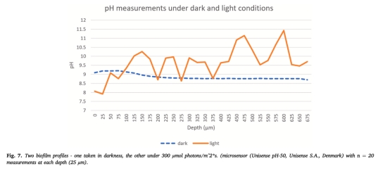 Unisense微電極測(cè)量生物膜內(nèi)pH梯度(圖7),關(guān)聯(lián)光合作用強(qiáng)度。