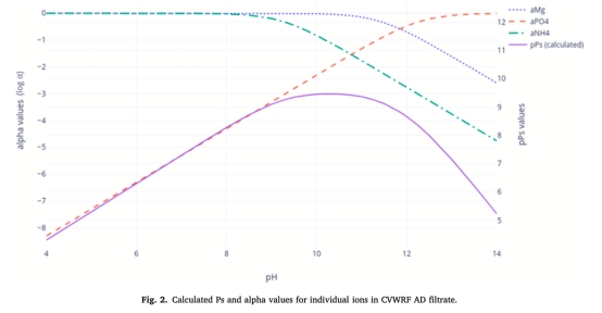 基于Stumm-Morgan方程計(jì)算鳥糞石溶解度積(pP?)與ADE離子濃度積(pQ??),確定pH 7-13為理論沉淀區(qū)間(圖2-3)。
