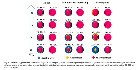 發(fā)現(xiàn)表層氧濃度(C_{O2,S})需>10%才能消除高溫期厭氧層,為通風(fēng)系統(tǒng)設(shè)計(jì)(如變頻風(fēng)機(jī)控制)提供定量標(biāo)準(zhǔn)。
