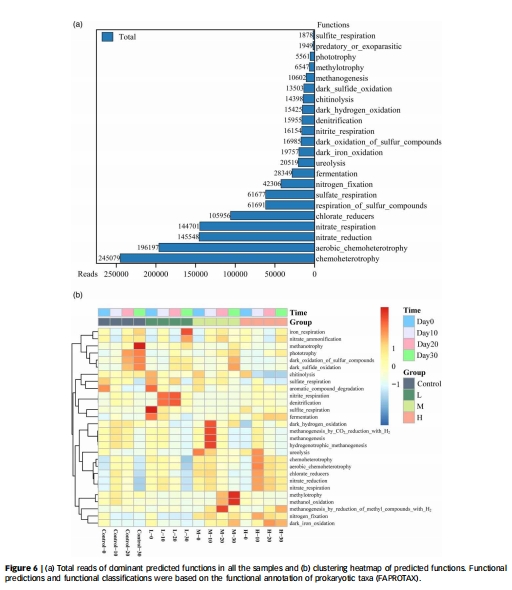 數(shù)據(jù):FAPROTAX預(yù)測(cè)顯示電壓組硫酸鹽還原↓、化能異養(yǎng)↑。