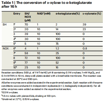 性能優勢:在D-木糖→α-酮戊二酸的多酶級聯中,SH的NAD?周轉數(TTN)高達44,000 mol/mol酶,遠超NOX(圖4)。