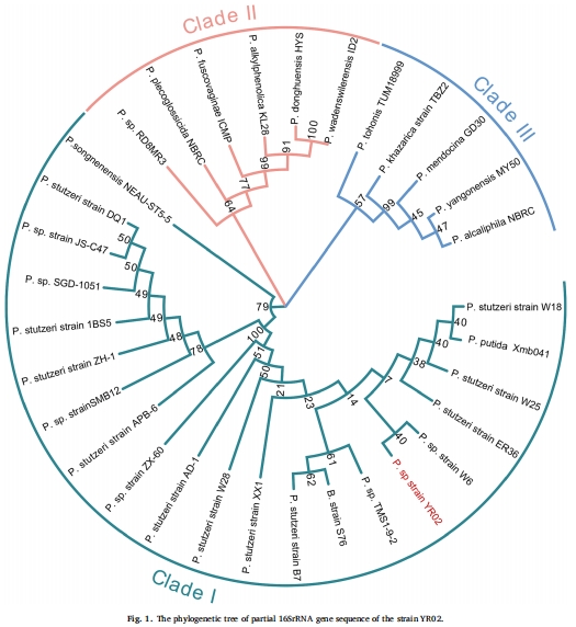 菌株來源:循環水產養殖系統廢水富集分離(16S rRNA鑒定為Pseudomonas屬,圖1)。