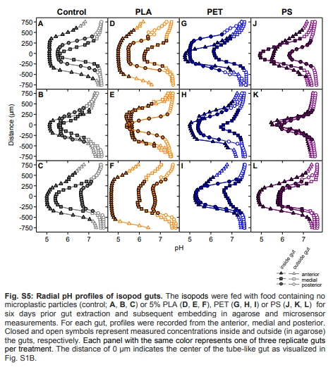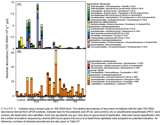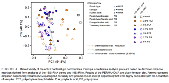 本研究首次揭示可降解(PLA)與不可降解微塑料(PET/PS)對等足類腸道微生物組及氫代謝的相反效應(yīng):