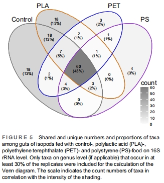 探究不同MP類型(PLA vs. PET/PS)對等足類腸道微生物組的影響。