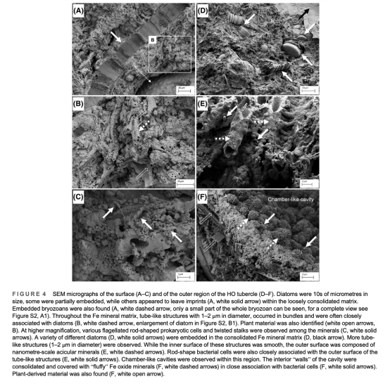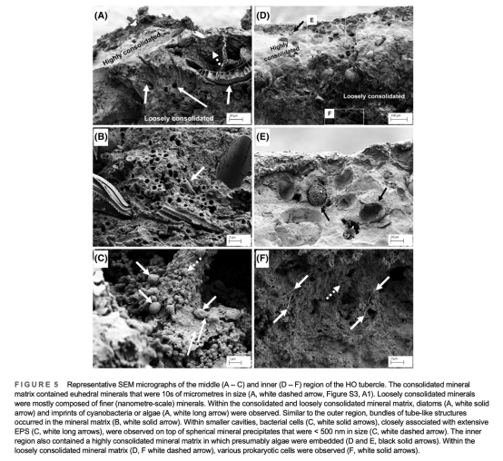 數據:顯微CT顯示多層腔室結構(最大直徑17mm);電鏡揭示微生物嵌入礦物基質(如硅藻、鞘細菌)