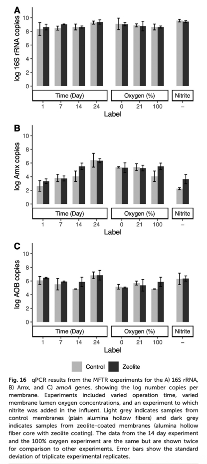 沸石涂層膜僅在特定條件下(100%氧曝氣或補充亞硝酸鹽)增強Anammox菌保留,效果不穩定。