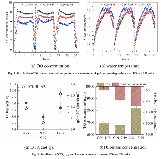 數(shù)據(jù):C:N=4.79/9.49/13.94時平均DO分別為7.68/6.91/5.85 mg/L。