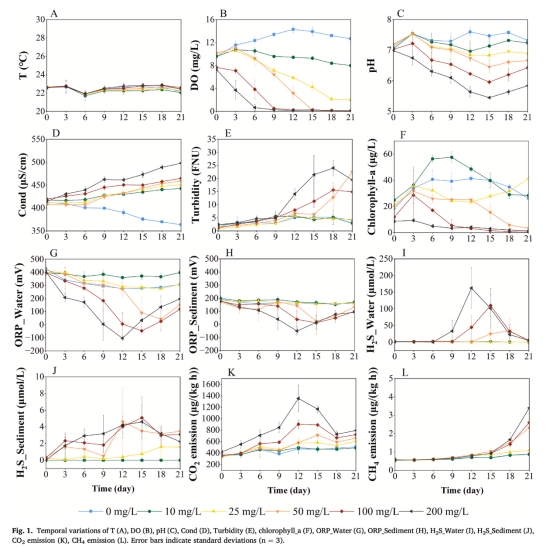 揭示相間差異:發(fā)現(xiàn)H?S濃度在水體中顯著高于沉積物(最高達162.50 μmol/L),且水體ORP下降速率更快,表明有機碳對水體的直接影響更強。