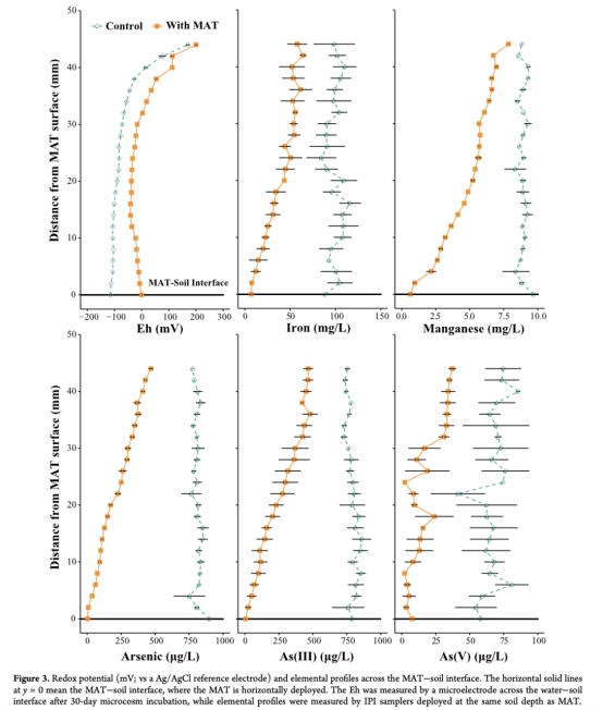 注:Unisense電極數(shù)據(jù)(圖3)是核心證據(jù),其高空間分辨率定量揭示了MAT的局部氧化效應及與砷固定的直接關聯(lián),為技術機制提供了不可替代的微尺度洞察。