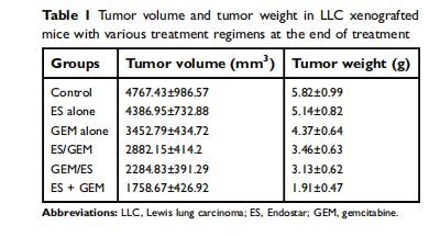 對照組(無治療)、Endostar單藥組(ES)、吉西他濱單藥組(GEM);
