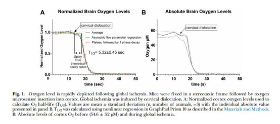 數(shù)據(jù):缺血后皮質(zhì)O?濃度從54.6±3.2μM降至<10 nM(12秒內(nèi)),T?/?=5.32±0.45秒。