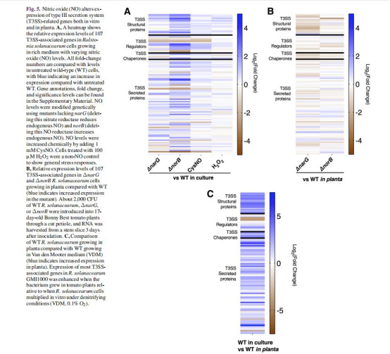 探究NO(反硝化代謝的毒性副產(chǎn)物)如何影響青枯菌T3SS的表達與功能,闡明NO信號在青枯菌侵染植物過程中的生物學意義,為理解細菌在宿主環(huán)境中的適應性機制提供新視角。