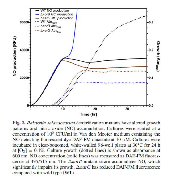 數(shù)據(jù):ΔnorB突變體在培養(yǎng)中積累NO并抑制生長(圖2)。