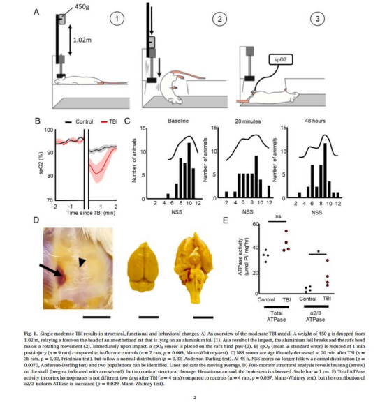 ATP酶活性(圖1E):TBI后皮層α2/3亞型ATP酶活性升高(p=0.029),表明能量代謝代償性調(diào)整。