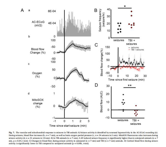4-AP誘導(dǎo)癲癇:TBI組癲癇頻率更高(p=0.04),CBF增幅更低(p=0.006),進(jìn)一步證實TBI削弱代謝需求下的血管應(yīng)答能力。