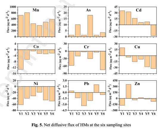 SWI凈通量:Mn/As/Cd通量為正(沉積物→上覆水),Zn/Cu/Ni通量為負(上覆水→沉積物)。