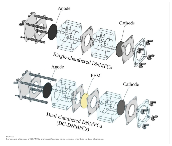 反應(yīng)器設(shè)計:構(gòu)建可拆卸單室DNMFC(工作體積30 mL),碳布陽極/Pt-C陰極(圖1)。