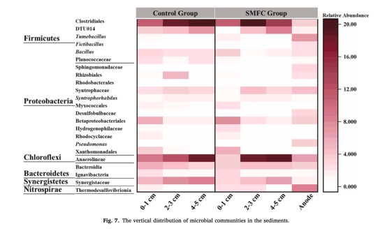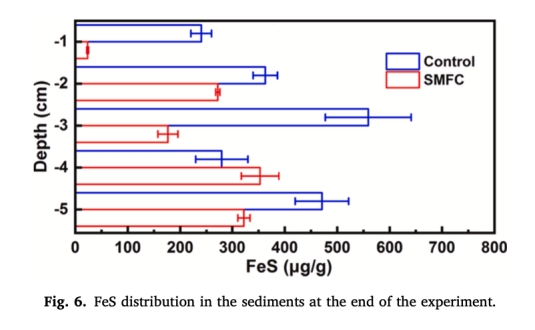 意義:SMFC組表層沉積物(0-1 cm)BD-P濃度(612.50 μg/g)比對(duì)照組高28%,表明鐵氧化物再形成吸附磷。