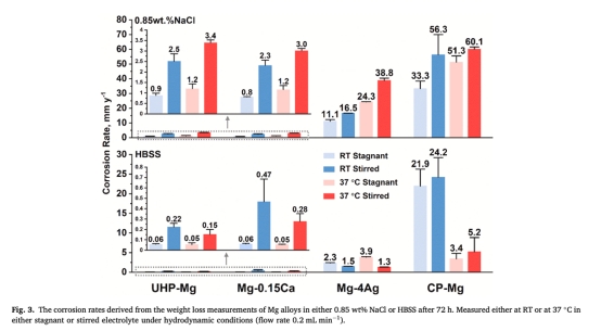 3. UHP-Mg在動(dòng)態(tài)37°C HBSS中腐蝕速率(0.22 mm/y)與體內(nèi)數(shù)據(jù)吻合,驗(yàn)證實(shí)驗(yàn)條件可靠性