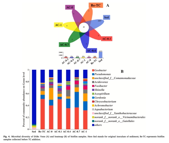 醋酸鹽在生物電化學(xué)系統(tǒng)中刺激四環(huán)素生物降解途徑