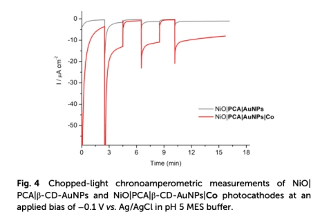 β-CD-AuNPs光電流達(dá)420 μA cm?2(0 V vs. Ag/AgCl);完整光陰極析氫光電流-11 μA cm?2