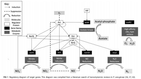 支持反硝化基因受Anr/Dnr轉(zhuǎn)錄因子級(jí)聯(lián)調(diào)控的模型(圖1)。