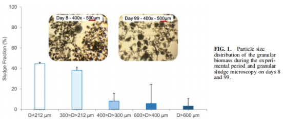 證實低有機負荷(0.70±0.09 kg COD/m3·d)下可形成AGS,但小粒徑顆粒(<200μm)限制同步硝化反硝化能力。