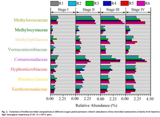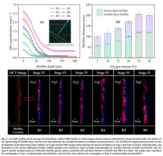 逆擴散膜生物膜生物反應器(MBfRs)中的生物膜分層 與好氧甲烷氧化耦合的好氧缺氧反硝化的影響氧氣壓力的影響