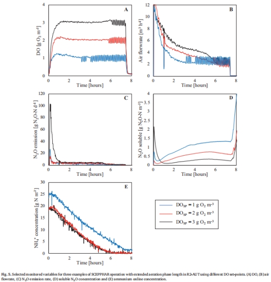 DO梯度實(shí)驗(yàn):對(duì)比DO設(shè)定值1/2/3 g O?/m3對(duì)N?O排放的影響(圖5)。