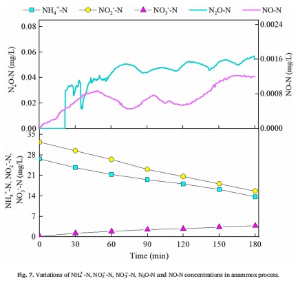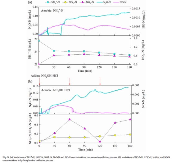 批次實驗中在線跟蹤N?O/NO生成曲線(圖5a-b, 圖6, 圖7)。