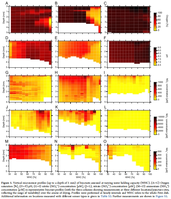 本研究通過多尺度技術(X射線顯微斷層掃描、熒光顯微鏡和微電極)揭示了生物土壤結皮(biocrusts)中微觀異質性如何驅動活性氮(Nr)排放的機制: